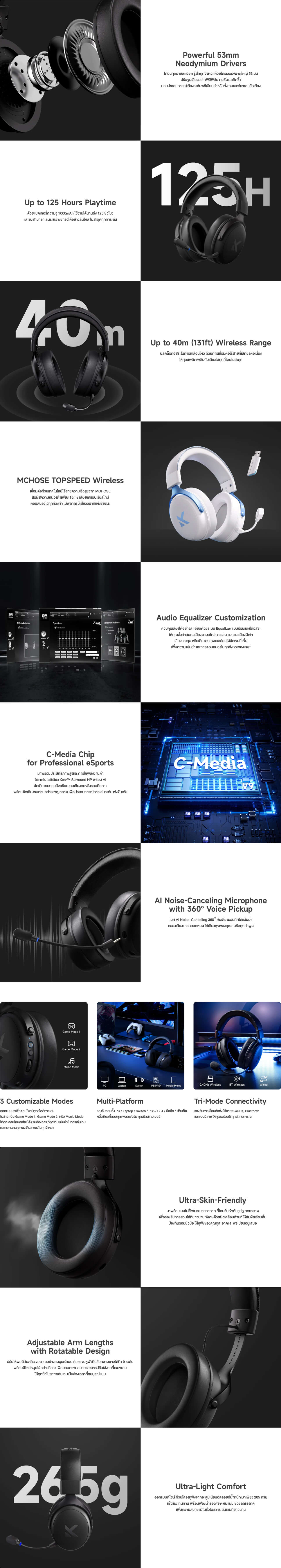หูฟังเกมมิ่ง MCHOSE GAMING HEADSET WIRELESS V9 WHITE BLUE Gaming Headset