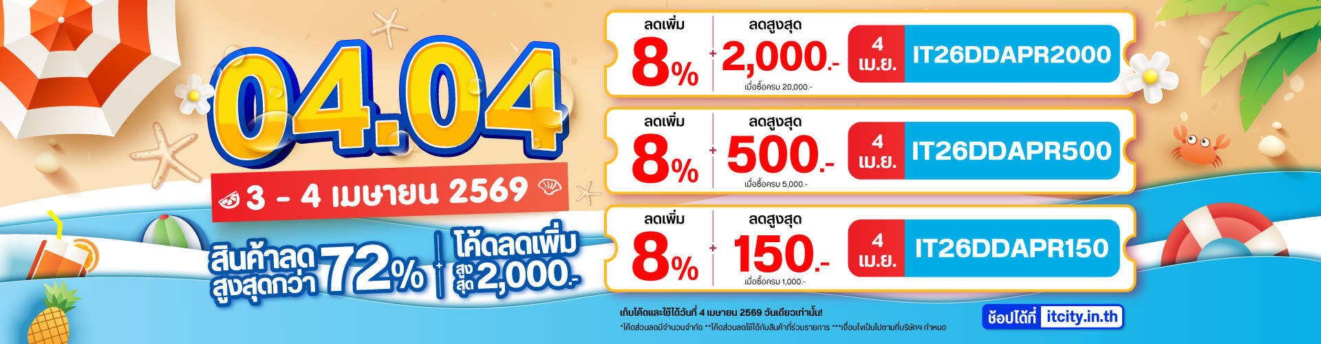 แคมเปญ IT CITY DDAY 04.04.2026 วันที่ 4 เมษายน 2569 ต้อนรับเดือนเทศกาลสงกรานต์ ด้วยโปรโมชั่นที่โคตรจะร้อนแรง!