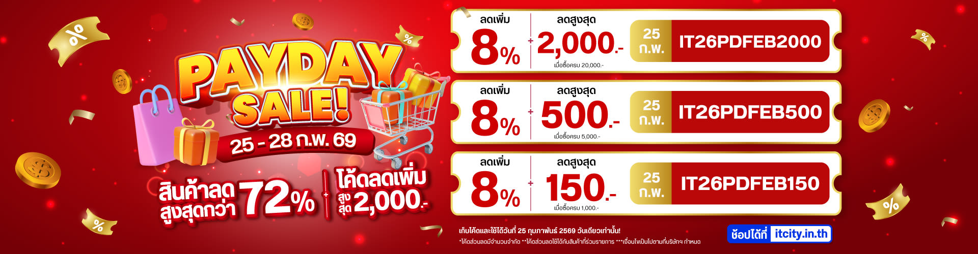 แคมเปญ IT CITY PAYDAY วันที่ 25 กุมภาพันธ์ 2569 ส่งท้ายเดือนแห่งความรัก ด้วยโปรโมชั่นโคตรที่จะคุ้ม!