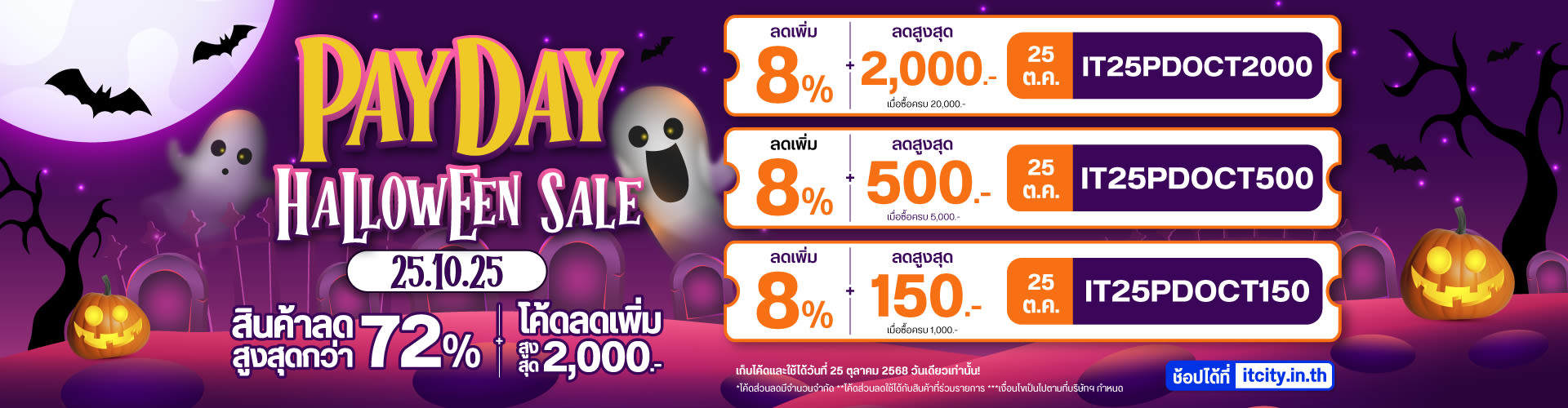 แคมเปญ IT CITY PAYDAY Halloween Sale วันที่ 25 ตุลาคม 2568 ส่งท้ายเดือนกับเทศกาลผีดุ กุ๊กๆกู่ว ด้วยโปรโมชั่นโคตรที่จะปัง