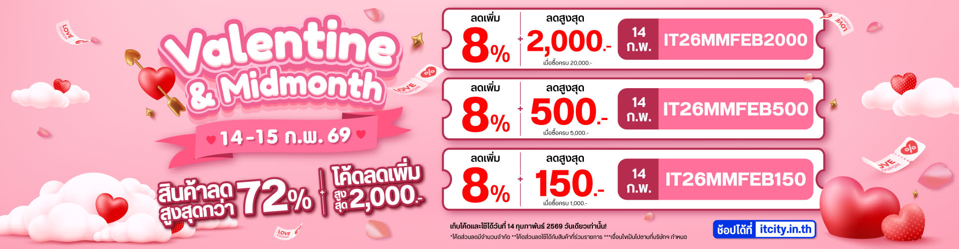 แคมเปญ IT CITY Valentine's & Midmonth วันที่ 14-15 กุมภาพันธ์ 2569 ฉลองวันแห่งความรัก ด้วยโปรโมชั่นโคตรที่จะคุ้ม!