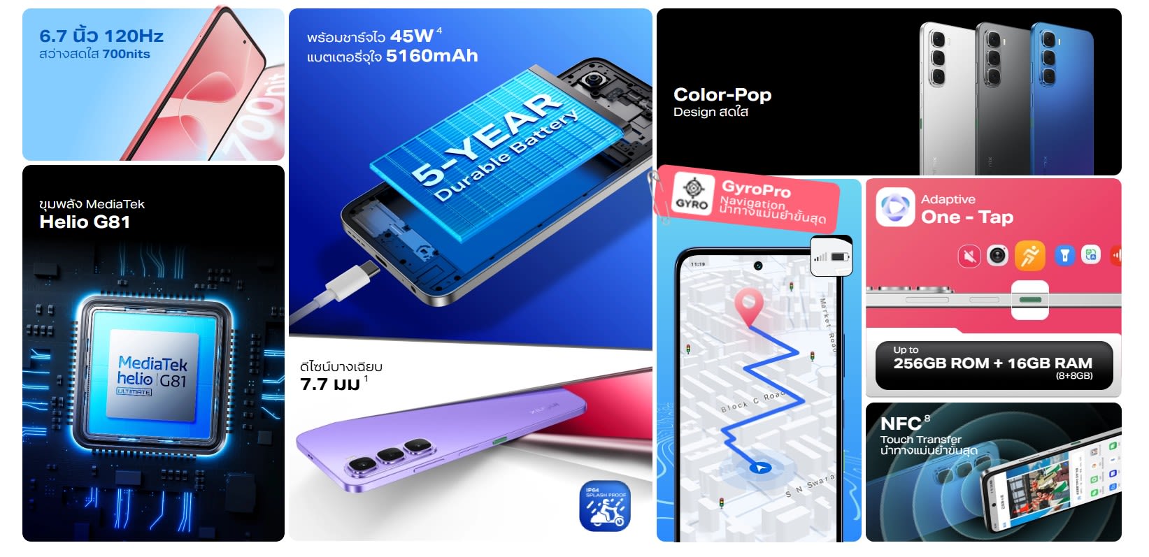 Display : HD+ 120Hz 6.7" IPS ความสว่าง 700Nits