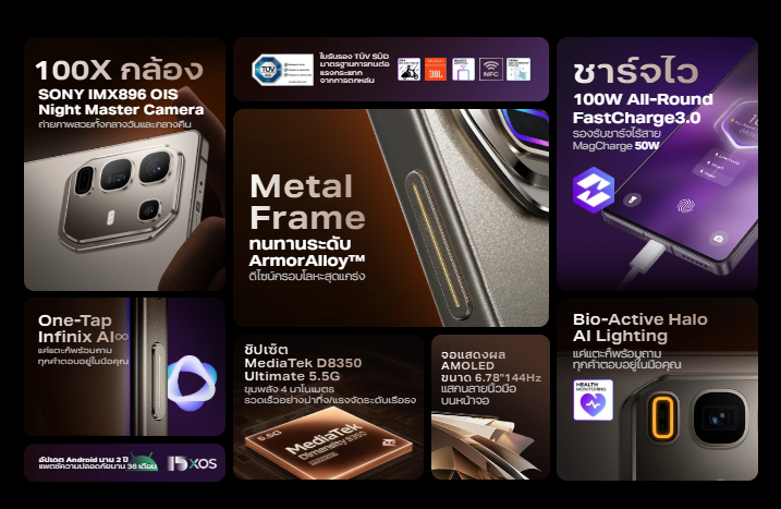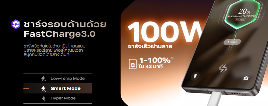 - ชาร์จเร็ว 100W ชาร์จไร้สาย MagCharge 50W