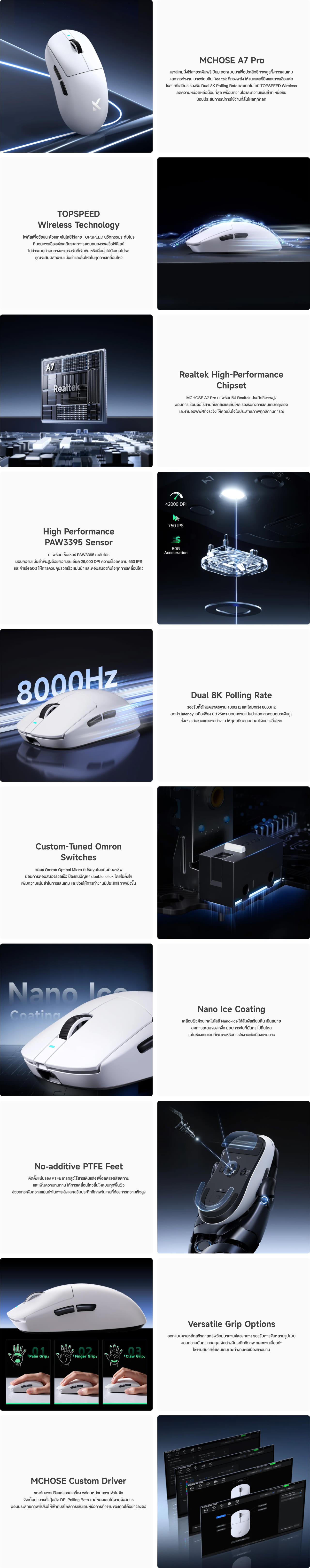 MCHOSE A7 Pro White คือคำตอบของทั้งสายเกมเมอร์และมืออาชีพ ที่ต้องการความเร็ว ความแม่นยำ และความสบายในทุกการใช้งาน