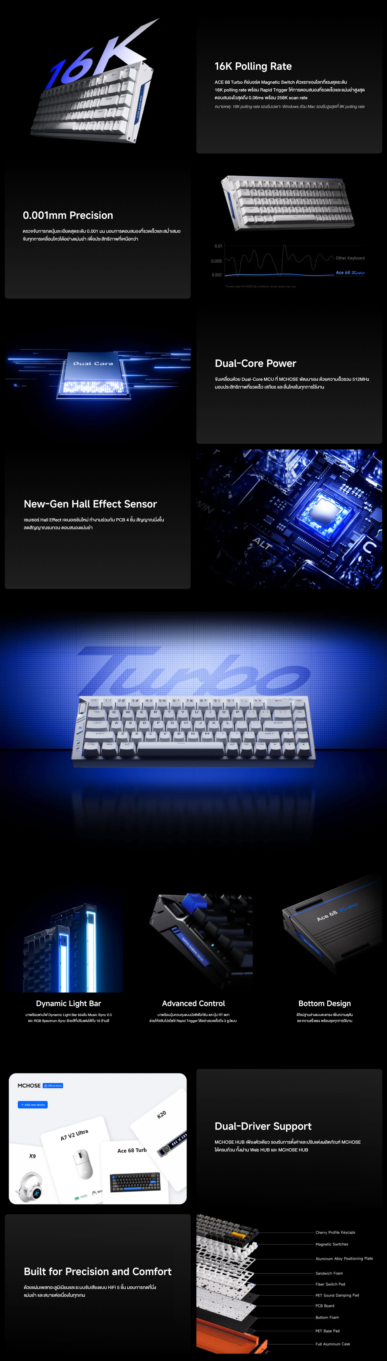 SKU : GMK-001818Mount Tai Magnetic Switches: อัปเกรดความพรีเมียมด้วยสวิตช์แม่เหล็ก Mount Tai ที่ให้สัมผัสการกด (Typing Feel) ที่สมูทและเสถียรกว่าเดิม รองรับการปรับจุดสั่งงานได้ละเอียด 0.1 - 4.0 มม. และระบบ Rapid Trigger ที่แม่นยำเป็นพิเศษ