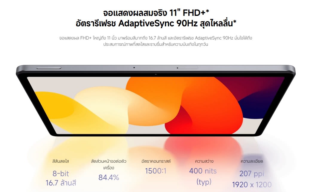 Redmi Pad SE 8.7 แท็บเล็ตที่ให้คุณพกพาความสนุกไปได้ทุกที่ ด้วยหน้าจอขนาดใหญ่ถนอมสายตา กับอัตรารีเฟรชที่ราบรื่นถึง 90Hz ให้ประสบการณ์การใช้งานที่ลื่นไหล มาพร้อมกับลำโพงคู่ รองรับ Dolby Atmos กับช่องเสียบหูฟัง 3.5 มม. และมีน้ำหนักเบาพกพาสะดวก จับได้อย่างถนัดมือ ให้คุณนั้นได้นำติดตัวไปได้ในทุกที่ทุกเวลา